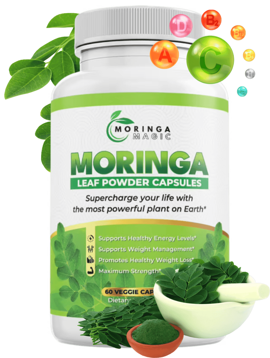 Moringa Magic is a natural supplement packed with essential vitamins, minerals, and antioxidants. Known as the “Miracle Tree,” moringa helps boost your overall wellness without any chemicals.